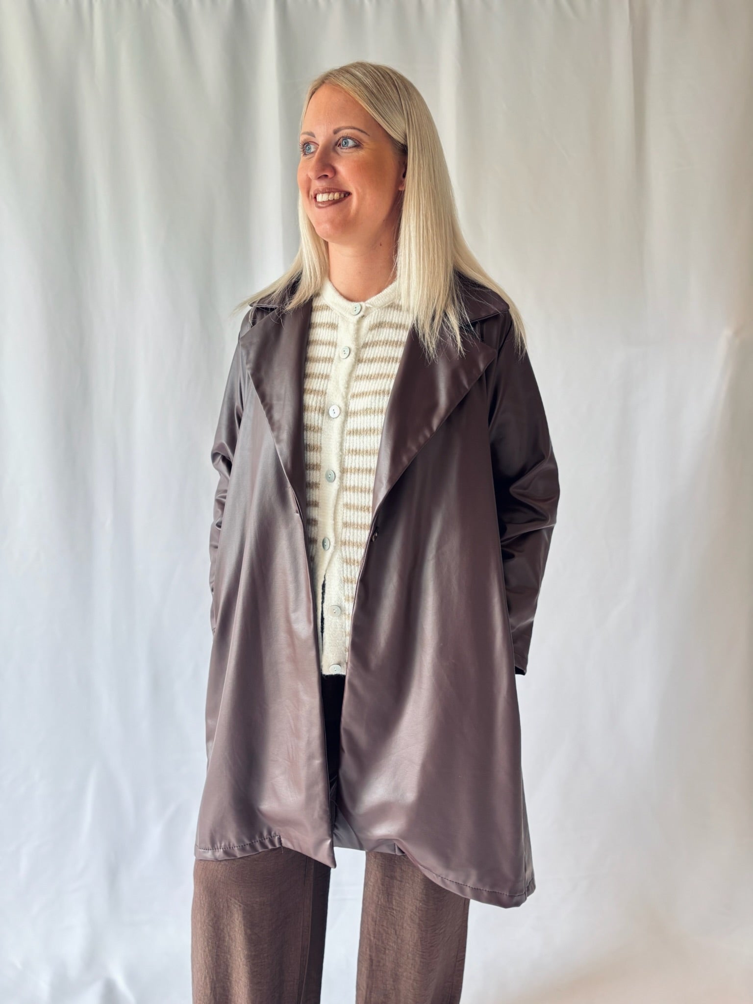 Stylisch, lässig, elegant und unverwechselbar – der Lederimitat-Mantel Braun macht jeden Look besonders. Weiches Material trifft auf trendigen Style.