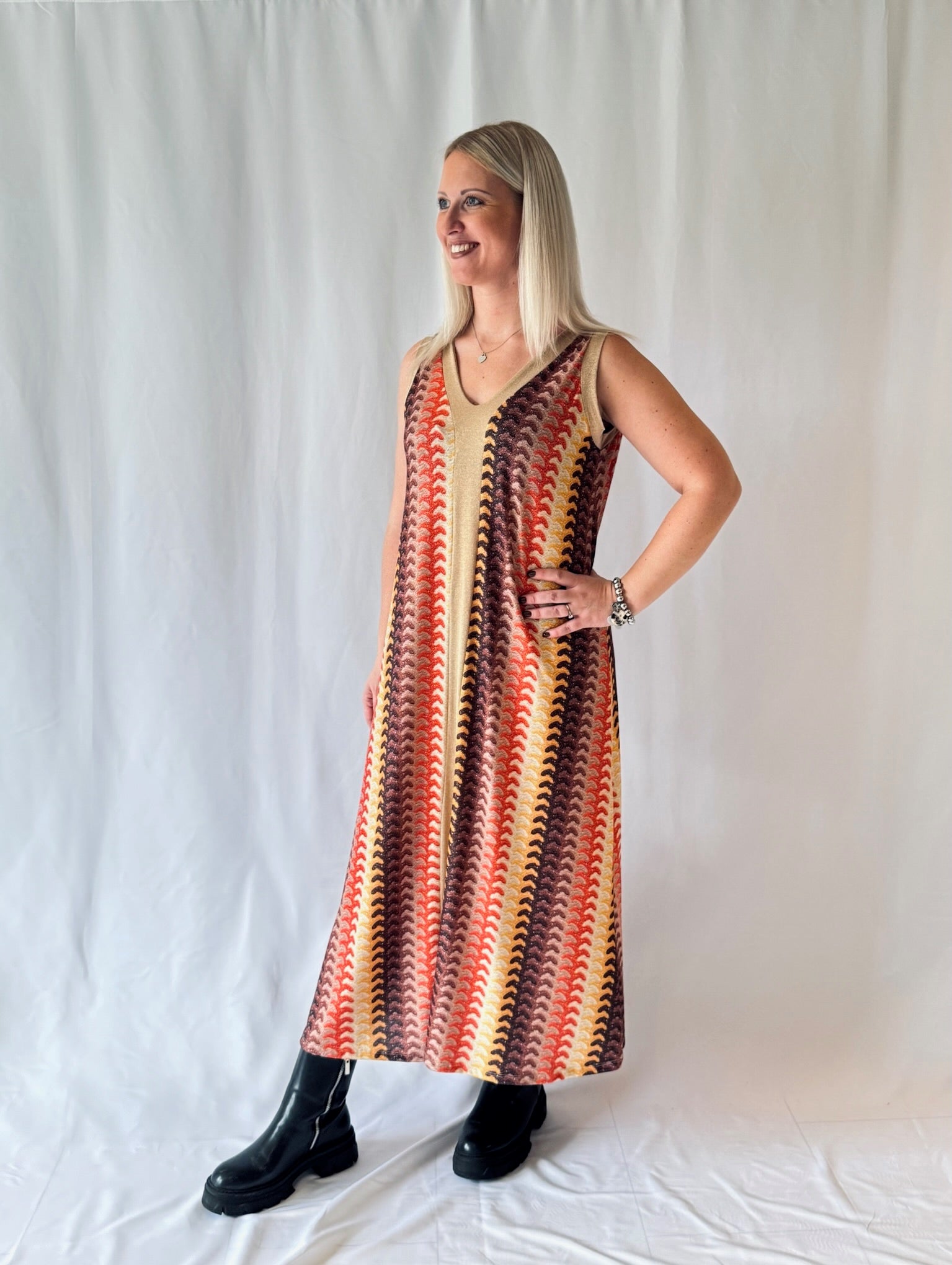 Frisch, leicht und modern – das Maxikleid Beige/Orange ist ein vielseitiges Must-have. Perfekt für warme Tage und stylische Auftritte.