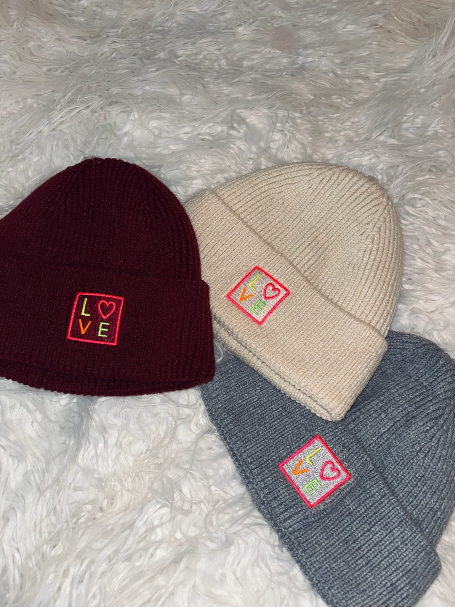 Unsere „Love“-Mütze Creme ist nicht nur kuschelig warm, sondern auch ein Statement. Schlicht, soft und mit Herz – das perfekte Accessoire für kalte Tage.