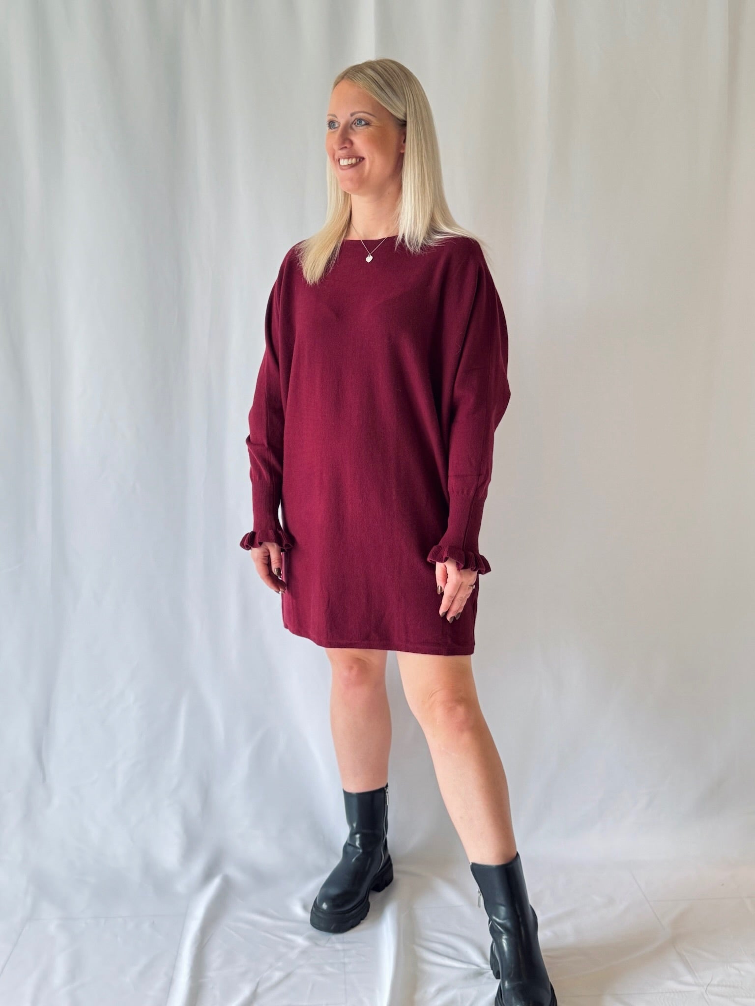 Ein Stricktraum in Bordeaux! Elegant, weich und absolut herbsttauglich – dieses Kleid macht Lust auf schöne Momente.