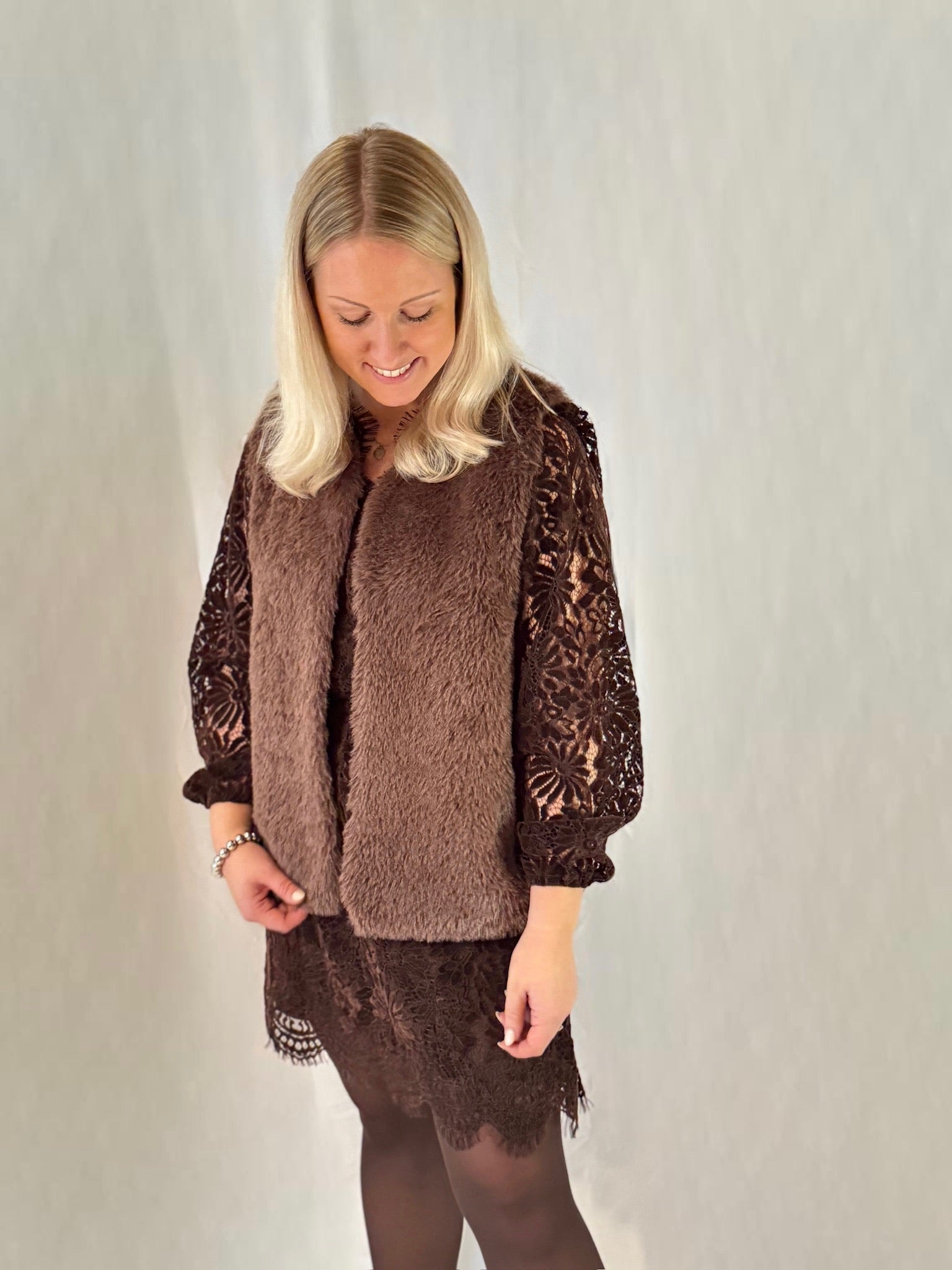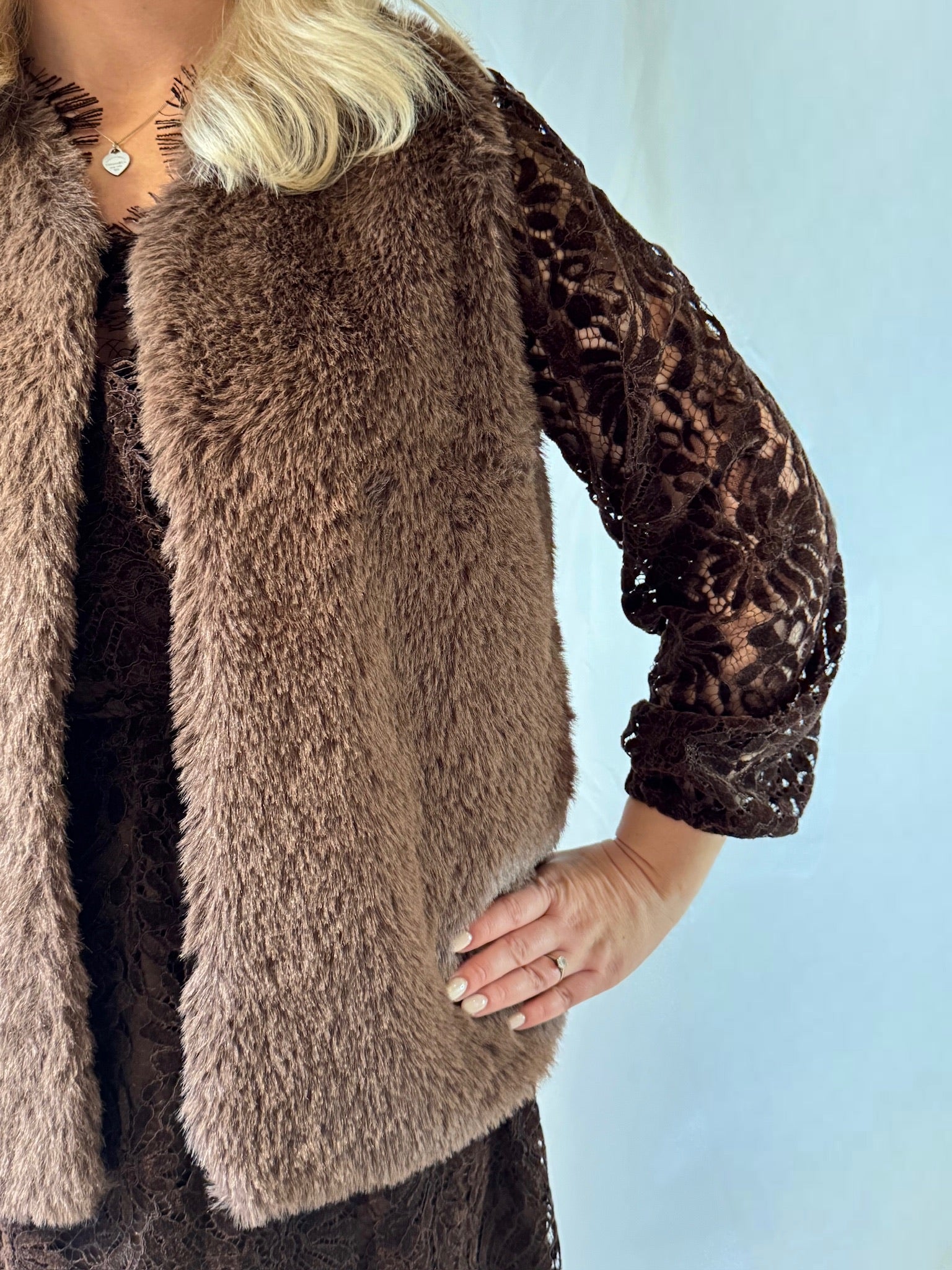 Kuschelig, warm und super stylisch: Die braune Fellweste wertet jede Kombi auf – von Strick bis Bluse.